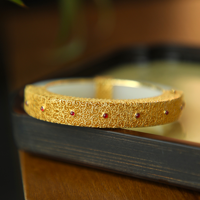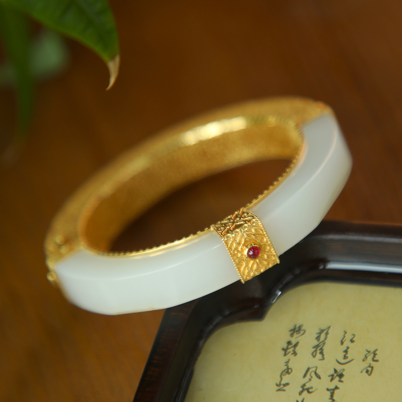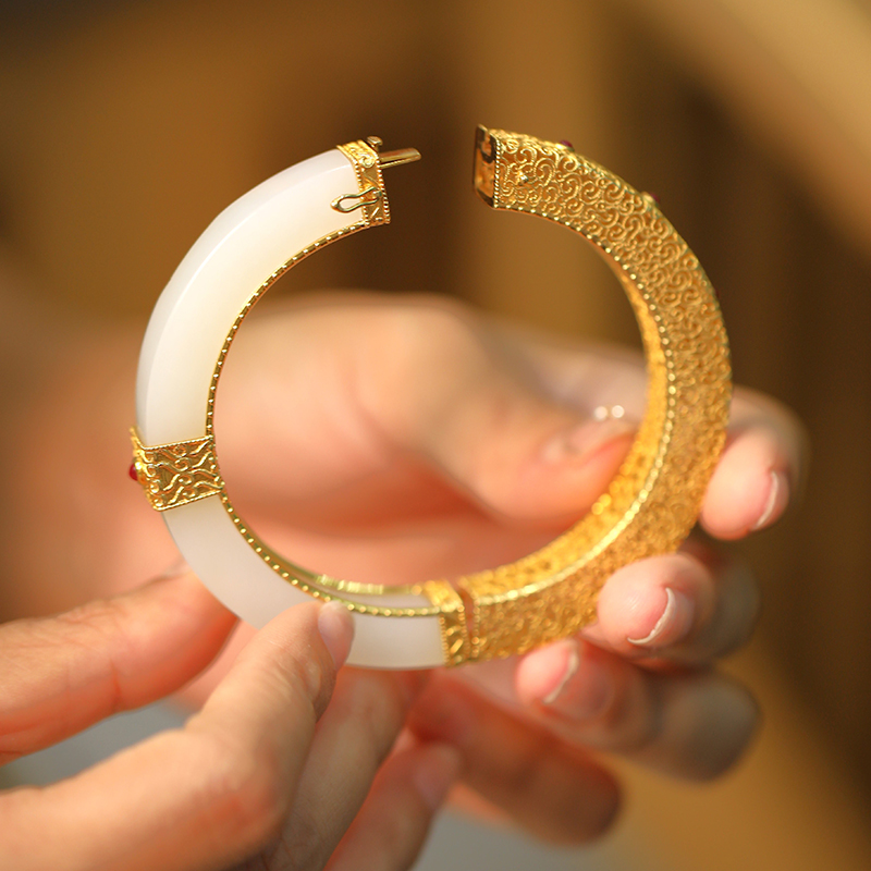 和田白玉金镶手镯